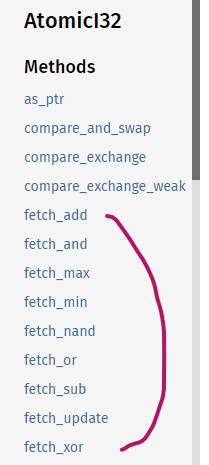 Rustμ κ²½μ°, Atomic νμ μ κΈ°λ³Έ μ°μ° ν¨μλ‘μ μ κ³΅μ΄ λλ€.