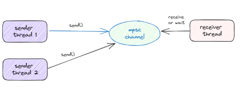 ๋ฅ๋ ์ฌ๋ฌ๊ฐ์ง๊ฐ ์์ง๋ง, ์ผ๋ฐ์ ์ผ๋ก ๊ฐ์ฅ ๋ง์ด ์ฌ์ฉ๋๋ ํํ๋ multi producer single consumer(mpsc)๋ค.
