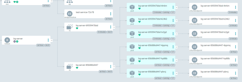 ๊ทธ๋ผ Rollout์ ๊ธฐ๋ฐ์ผ๋ก ๋ ํ๋ฆฌ์นด Pod๊ฐ 3๊ฐ ๋ฐ ๊ฒ์ด๊ณ