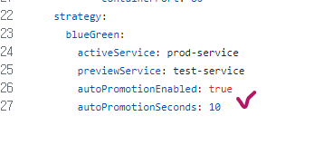 autoPromotionEnabled๋ ์ ๋ฒ์ ์ด ๋ฌธ์ ์์ด ๋ด์๋ blue-green ์ค์์นญ์ ์๋์ผ๋ก ํ ๊ฒ์ธ์ง์ ๋ํ ๊ฒ์ด๋ค.