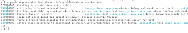 argocd-image-updater test docker.io/myyrakle/node-server-for-test