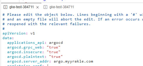 ๊ทธ๋ฆฌ๊ณ edit์ผ๋ก configmap์ ๊ณ์ ์ ๋ณด๋ฅผ ์ถ๊ฐํด์ค๋ค.