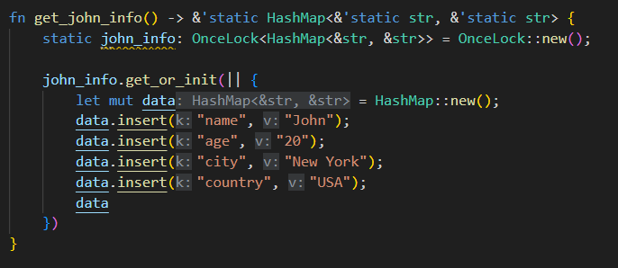 아래 코드는 get_or_init으로 최초 접근시에만 값을 초기화하고, 이후에는 저장된 값을 반환토록 한다.