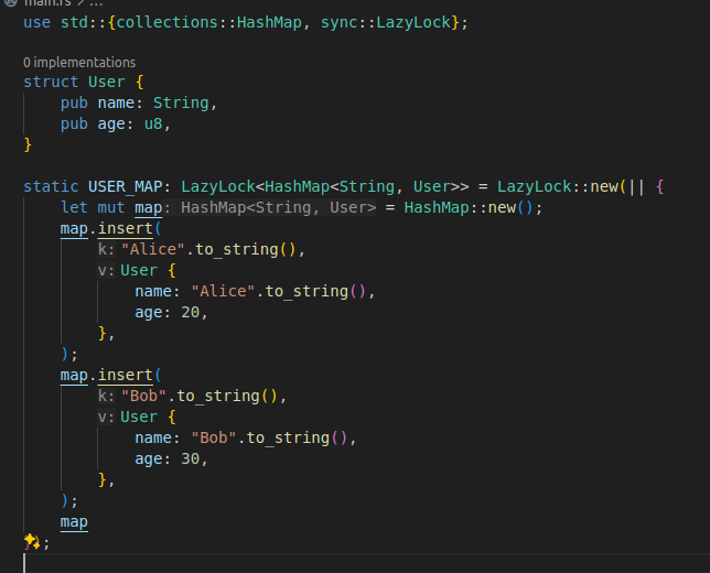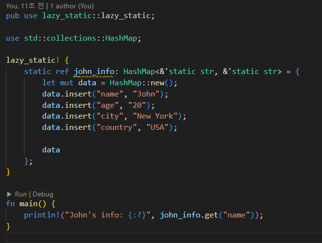아래는 위의 코드에 lazy_static을 적용해서 전역객체로 만든 예시다.