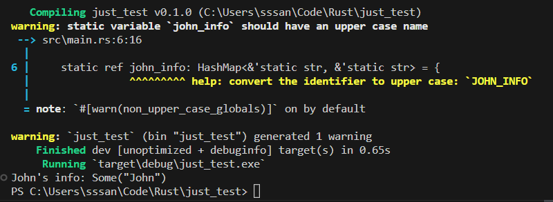 사용법은 매우 간단하다. 타입은 LazyLock으로 하고, 초기화도 선언 시점에 함께 해줄 수 있다.