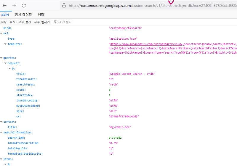 https://customsearch.googleapis.com/customsearch/v1?q=๊ฒ์์ด&cx=๊ฒ์์์ง๊ณ ์ ๋ฒํธ&key=APIํค