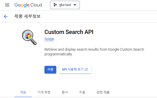 ํด๋น ๊ณ์ ์ผ๋ก ๋ค์ด๊ฐ์ Custom Search API๋ฅผ ํ์ฑํํด์ฃผ๋ฉด ๋๋ค.