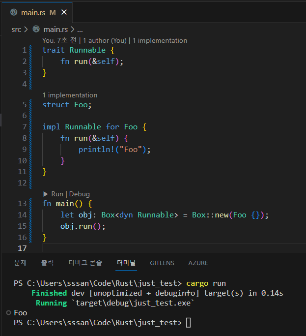 ์ผ๋ก ๋์ํด์ผ ํ๋ trait ๋ฉ์๋๊ฐ ํ์