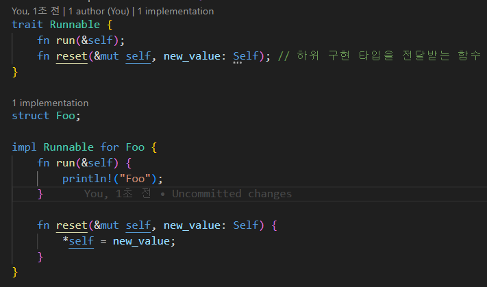 ์ฌ๊ธฐ์ Self๋ ํ์ ๊ตฌํํ์