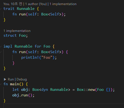 object safey๋ฅผ ์ค์ํ๋ ค๋ฉด ๋ฐ๋์ &self๋, Box