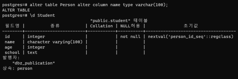 alter table Person alter column name type varchar(100);