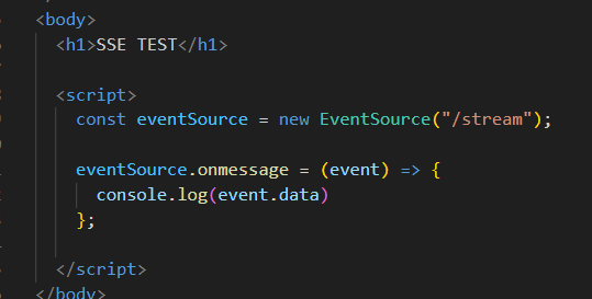 ๋ธ๋ผ์ฐ์ ์์ EventSource๋ผ๋ ํ์ค ๊ธฐ๋ฅ์ผ๋ก ์ฑ๋์ ์ด์ด๋๋ฉด, ์๋ฒ๊ฐ ๊ฑฐ๊ธฐ๋ก ๋ฐ์ดํฐ๋ฅผ ์ ์กํด์ค ์ ์๋ ๊ฒ์ด๋ค.