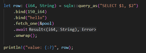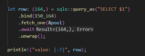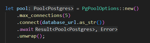 sqlx = { version = "0.7", features = [ "runtime-tokio", "postgres" ] }์ปค๋ฅ์ ๊ตฌ์ฑ