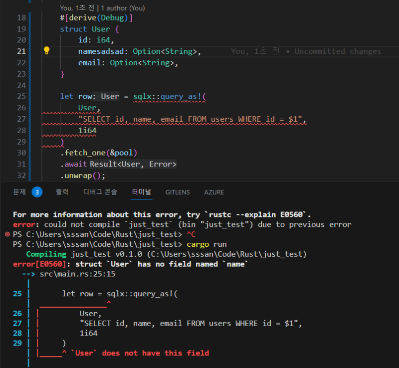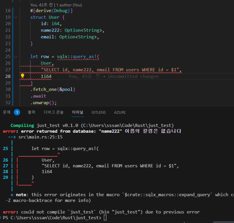 ์ปดํ์ผํ์ ๊ฒ์ฆ์ sqlx์ ๊ฐ์ฅ ๊ฐ๋ ฅํ ๊ธฐ๋ฅ ์ค ํ๋๋ค.