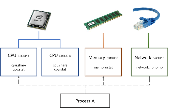 cgroup은 하나하나가 자원을 얼마나 차지할지를 정의하는 태그 같은 개념인데,