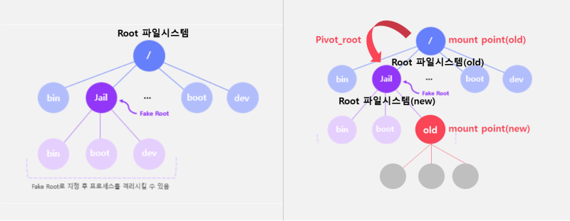 리눅스에서는 가상의 저장공간을 정의해서 "마운트"시켜주는 기능을 제공하는데, 이것을 활용해서 완전하게 격리되게끔 하는 것이다.