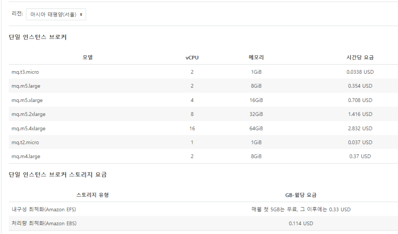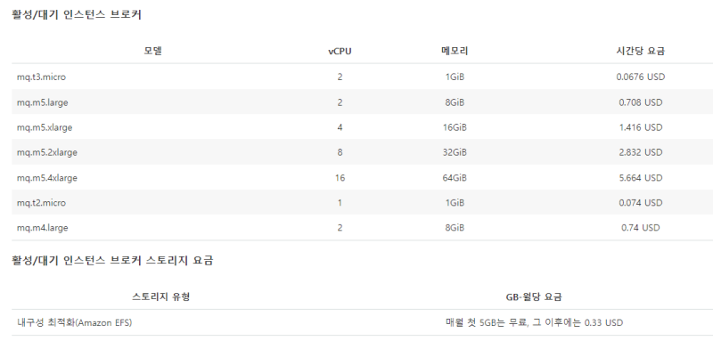 https://aws.amazon.com/ko/amazon-mq/pricing/