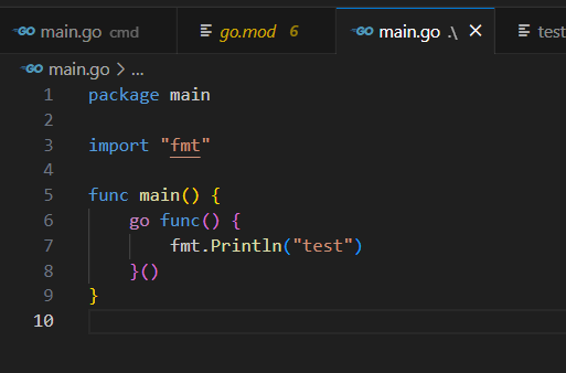 함수 호출 앞에 go만 붙이면 그냥 함수 실행이 아니라 고루틴 실행이 돼서 비동기적으로 실행이 된다.