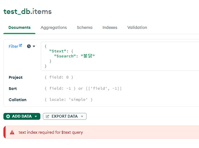 ํ์ง๋ง atlas search์์๋ $search๋ผ๋ ์ ์ฉ ํ๋๋ฅผ ํตํด ํํฐ๋ง์ ์ํํ๋ค.