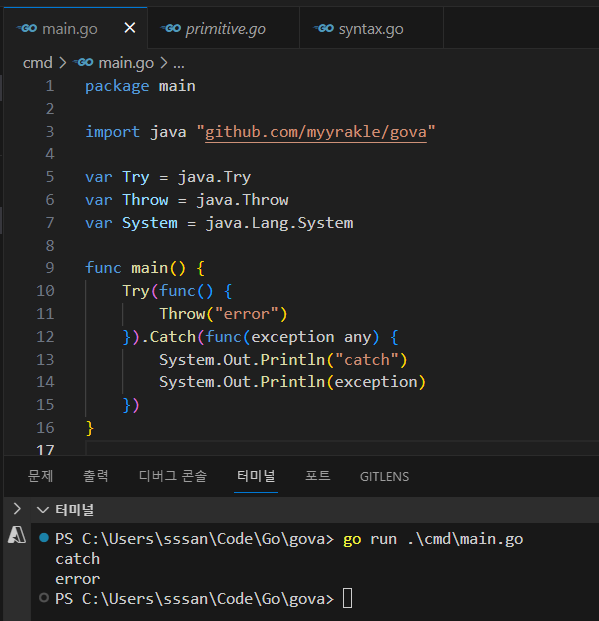 gova v0.2.0 2023.10.04 :: 1 min read #라이브러리 https://github.com/myyrakle/gova 흥미 본위로 가볍게 만들어본 모듈이다. 간단한 표준 입출력 처리와 이런것 정도를 할 수 있다.