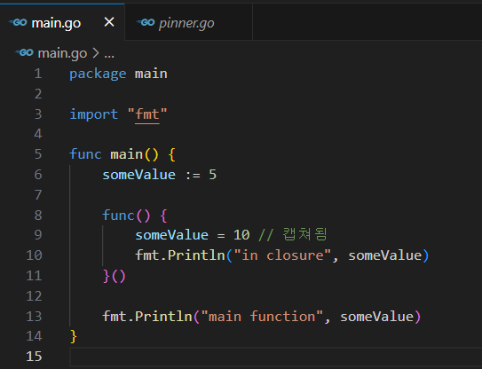 Go에서는 클로저, 그러니까 이름없는 함수는 변수의 캡쳐 기능을 제공한다.