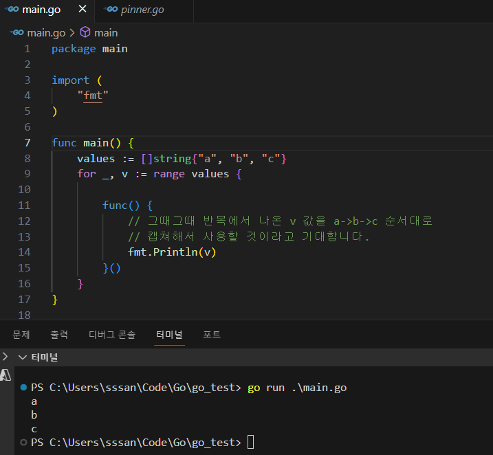 이건 일반적인 사용사례에서는 아주 간단하고 간편한데, 루프+고루틴과 엮이게 되면 문제가 좀 생긴다.