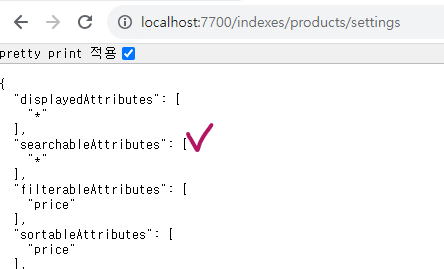 우선순위는 searchableAttributes 내에 있는 순서로 결정되는데, 이건 따로 설정하지 않으면 와일드카드라서 직접 지정을 좀 해줘야 한다.