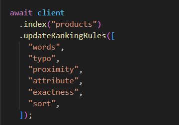 예를 들어, rankingRules의 기본값은 다음과 같다.
