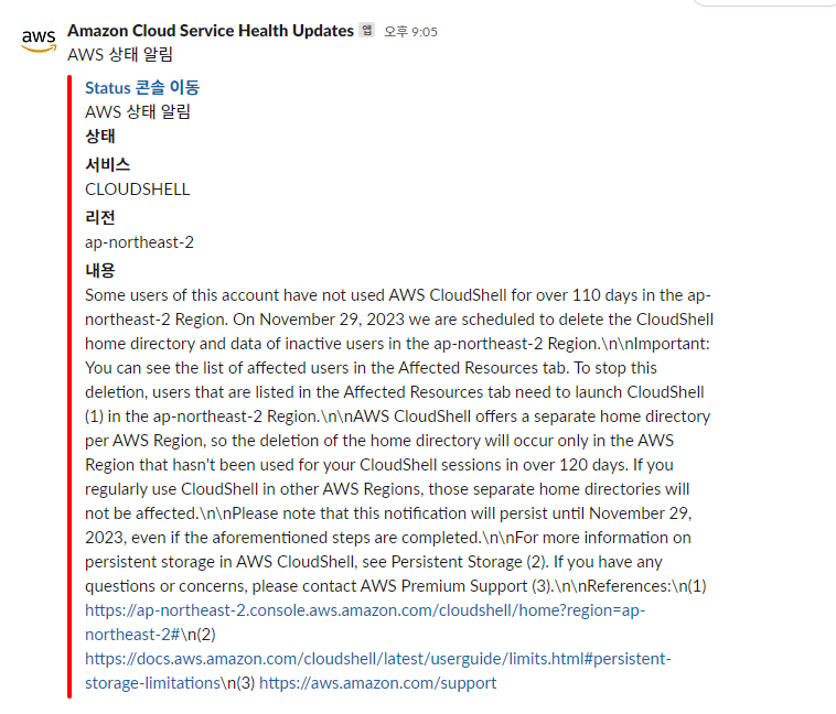 "text": "AWS ์ํ ์๋ฆผ",