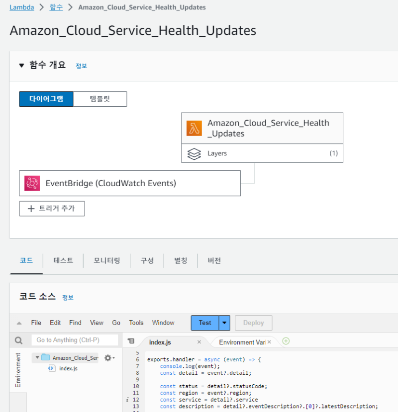 aws ์ํ ์๋ฆผ์ aws ์์ฒด์ ์ด๋ฒคํธ๋ก ์์ ์ด ๊ฐ๋ฅํ๋ค.