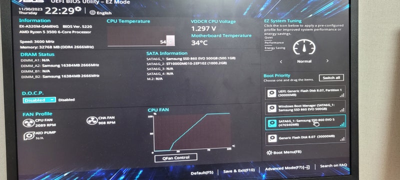 리눅스를 말아놓은 USB를 꼽고 재부팅 - 바이오스에 진입한다. 내 경우에는 asus라서 이런 형태였다.