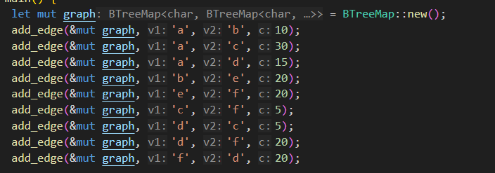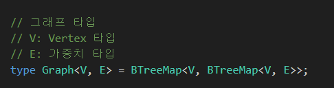 type Graph<V, E> = BTreeMap<V, BTreeMap<V, E>>;
