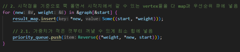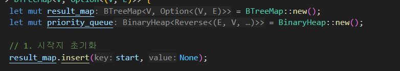 아래는 Rust로 작성한 이진힙 기반의 다익스트라 코드다.