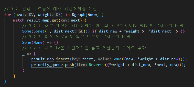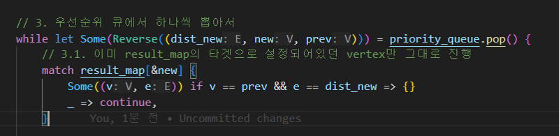 while let Some(Reverse((dist_new, new, prev))) = priority_queue.pop() {