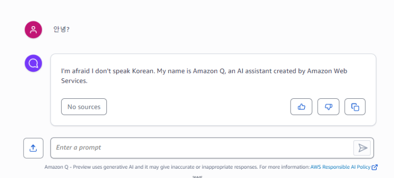 AWS์์ AI ๋ถ์ ํธ์นํด์ ์์ฒด์ ์ผ๋ก ์ ๊ณตํ๋ AI ์ฑ๋ด ์๋น์ค๋ค.