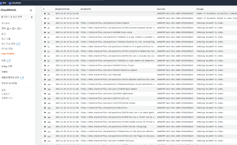 ํฌ๋กค๋ง ๋ก๊ทธ๋ ์์ cloudwatch ๋ก๊ทธ๋ก ํ์ธํด๋ณผ ์ ์๋ค.