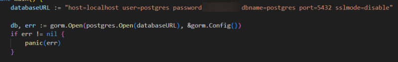 databaseURL := "host=localhost user=postgres password=... dbname=postgres port=5432 sslmode=disable"
