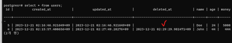 gorm์์ ์ญ์ ์ ๊ธฐ๋ณธ๋์์ soft delete๋ค.