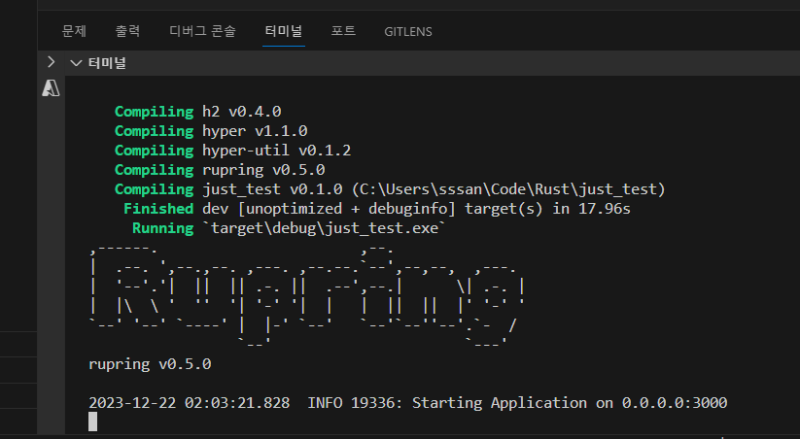 서버를 띄우면 간단한 부팅 로그를 띄워준다.