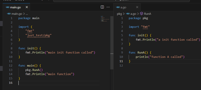 goλ initμ΄λΌλ μ μν¨μκ° μμΌλ©΄ κ·Έκ±Έ λͺ°λ μμμμ μ μ€νμμΌλ²λ¦°λ€.