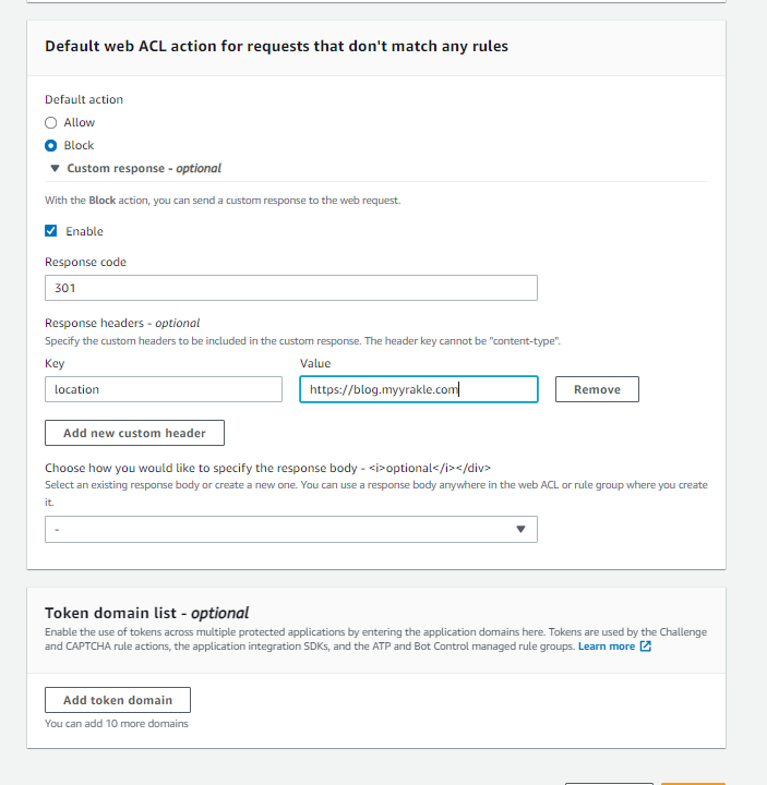 그리고 커스텀 리스폰스를 헤더를 설정해서 내 블로그로 리다이렉트시키도록 유도했다.