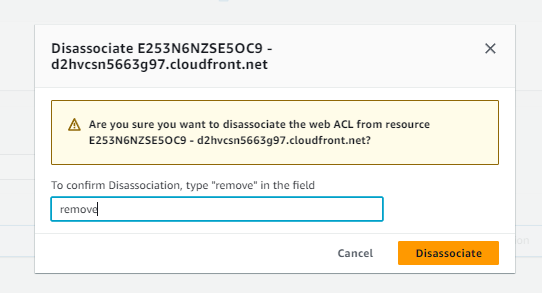 연관된 cloudfront 리소스를 임시로 제거하면 된다.