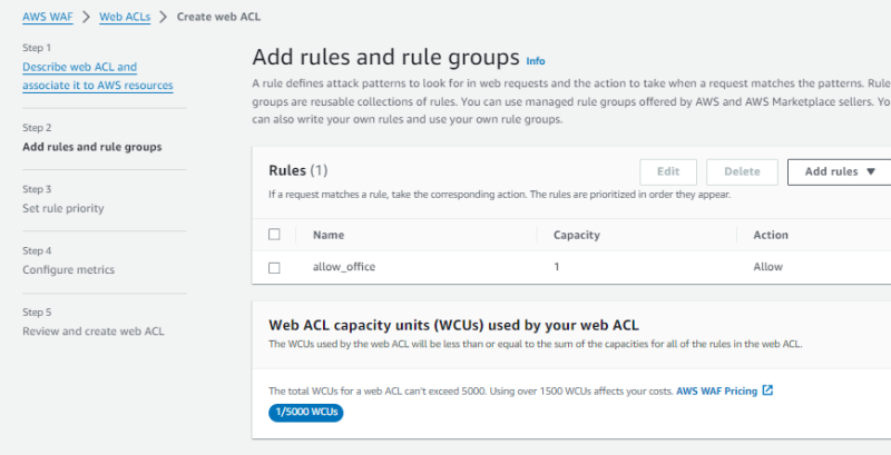 왜인지는 모르겠는데 WAF는 간단하게 딸깍할 수 있는 기능이 없다. 왜지?