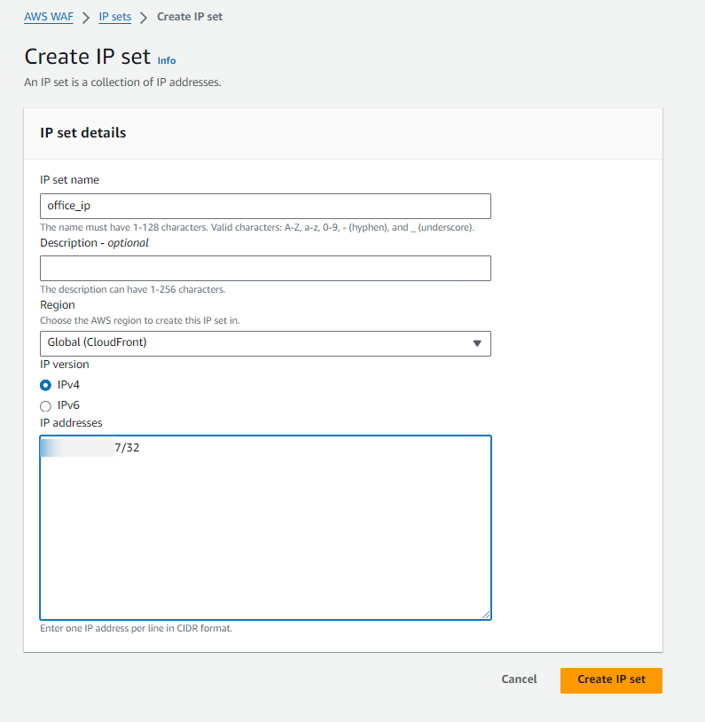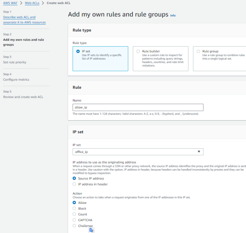 이런 IP 목록에 대한 관리는 IP set을 통해서 처리하게 된다.