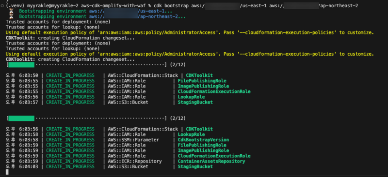 cdk bootstrap aws://ACCOUNT-NUMBER/REGION-1 aws://ACCOUNT-NUMBER/REGION-2