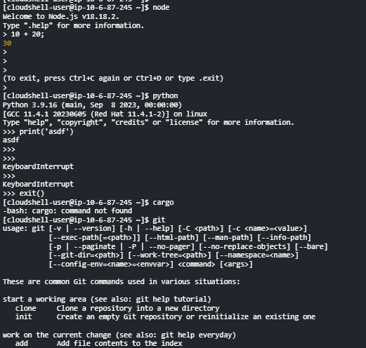 CloudShell์ ๋ด์ฅํ ํฐ๋ฏธ๋์ ์ง์ํ๋ AWS์ ๋ถ๊ฐ์๋น์ค๋ค.