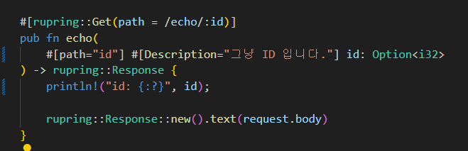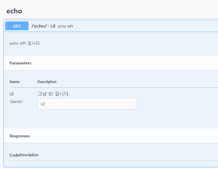 ์ Path Param์ ๋ํด์ ๋ฌธ์ํ๋ฅผ ํด์ฃผ๊ณ ์ถ๋ค๋ฉด Description ์ด๋ ธํ ์ด์ ์ ์ถ๊ฐํด์ค์ผ ํ๋ค.