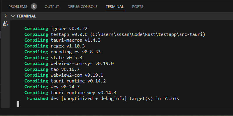 dev 빌드는 러스트답지 않게 금방 끝난다.