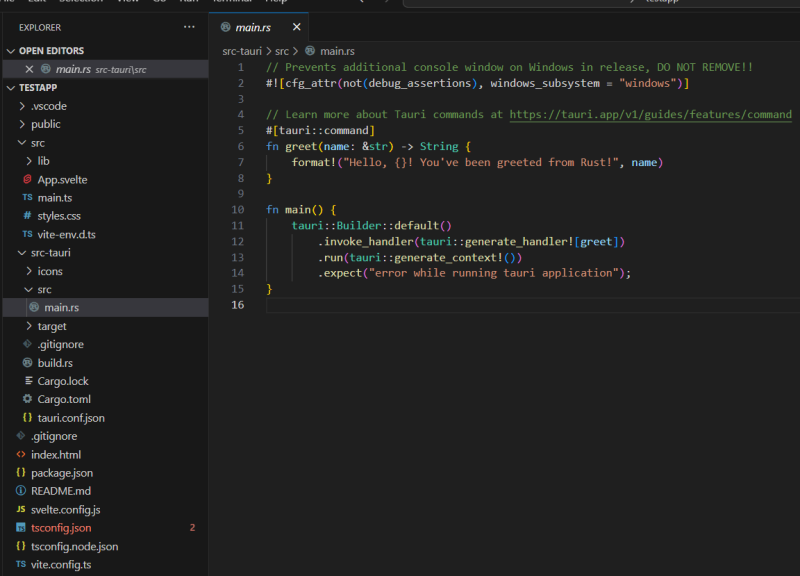 src-tauri에는 전반적인 제어 로직이 들어간다. 앱을 시작하는 것도 여기에 들어있다.