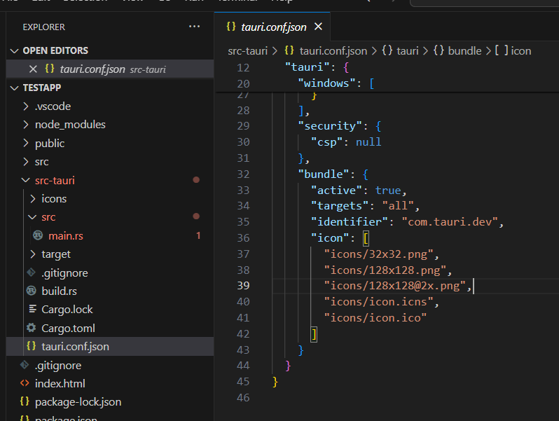 먼저 tauri.conf.json에 들어가서 identifier를 적당히 바꿔준다. 기본값은 unique하지 않아서 빌드가 안된다.